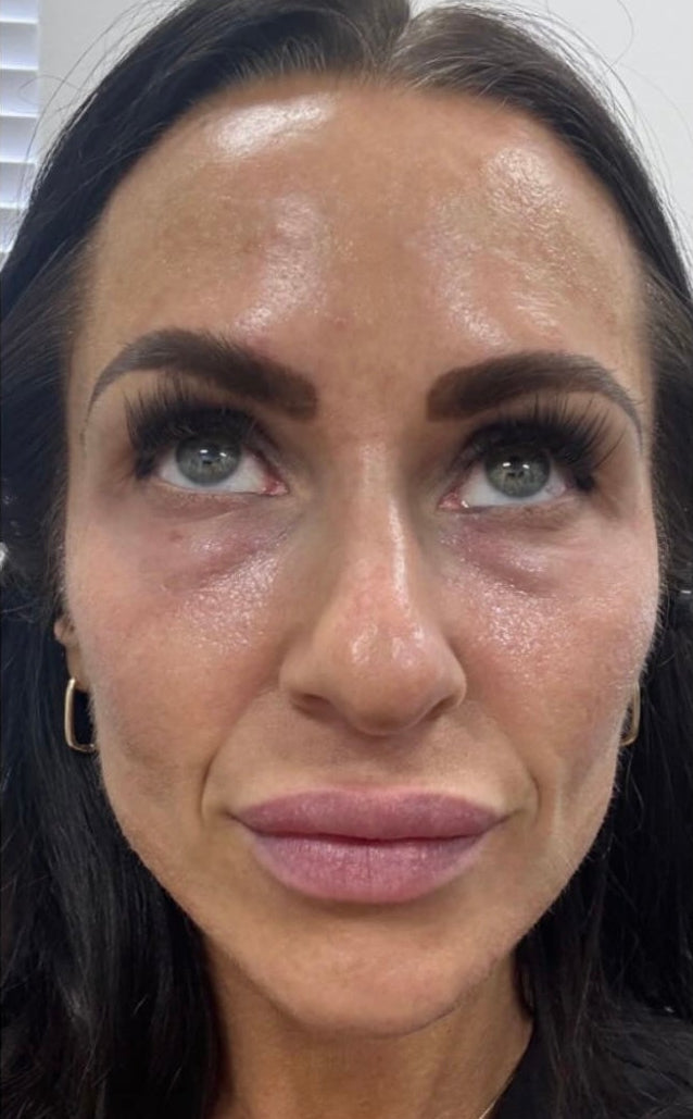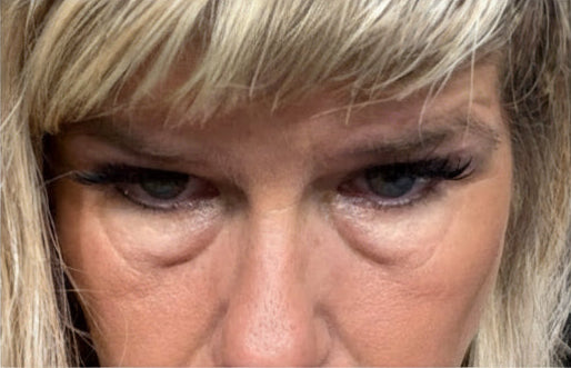 • Under-eye hollows + crepey texture